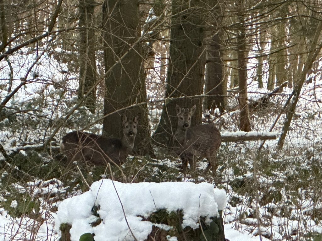Ein paar Schritte weiter trafen wir auf zwei Rehe, die da ganz ruhig standen und uns beobachteten.