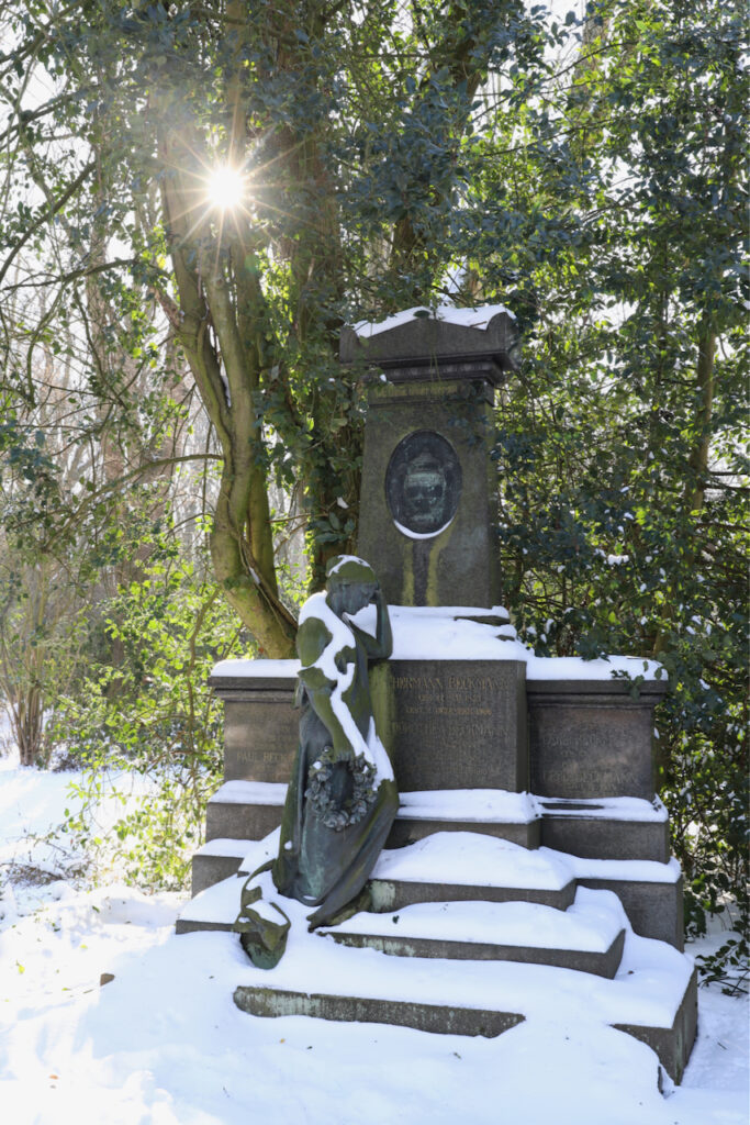 Schon ewig hatte ich vorgenommen, bei Schnee den Dortmunder Ostfriedhof zu besuchen. Und nachdem ich Samstag mein Auto freigearbeitet hatte, bin ich dann morgens vor dem Frühstück auf den Ostfriedhof gefahren. Und das war so schön dort! Der Friedhof wurde 1876 gegründet und ist ein wahrer Schatz. In der Ecke wohnten früher viele Politiker und Industrielle, die eine große Bedeutung für die Entwicklung von Dortmund hatten. Insofern gibt es dort fast 100 Gräber, die unter Denkmalschutz stehen.