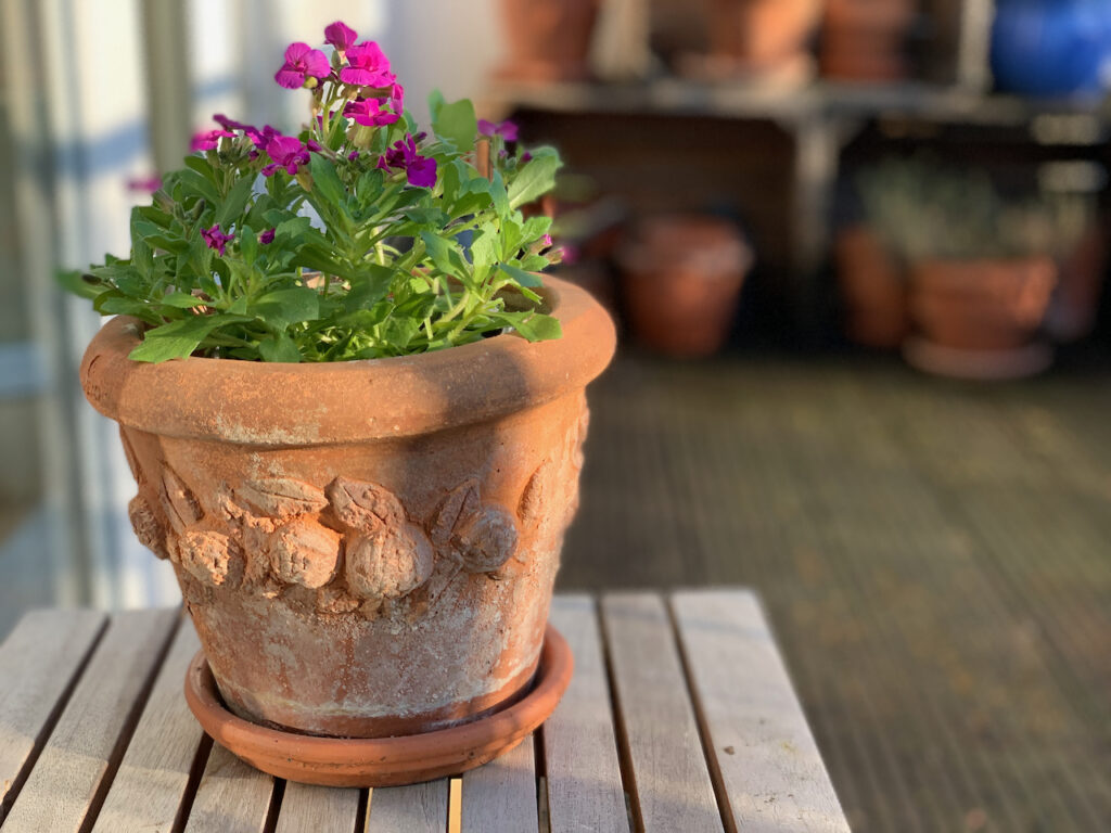 - Bunte Blümchen auf dem Balkon.