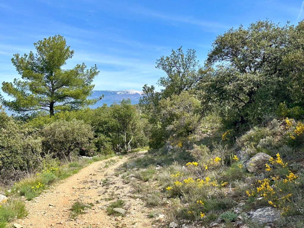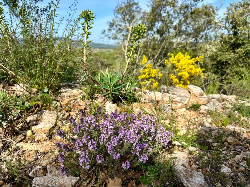 Begleitet von zahlreichen Schmetterlingen und dem typischen würzigen Duft der Provence sind wir den Berg hochgekraxelt. Überall brumseln die Bienen und Hummeln. Unterwegs blühten zahlreiche Ginsterbüsche (die gelben) und wilder Thymian (der lila-farbene).