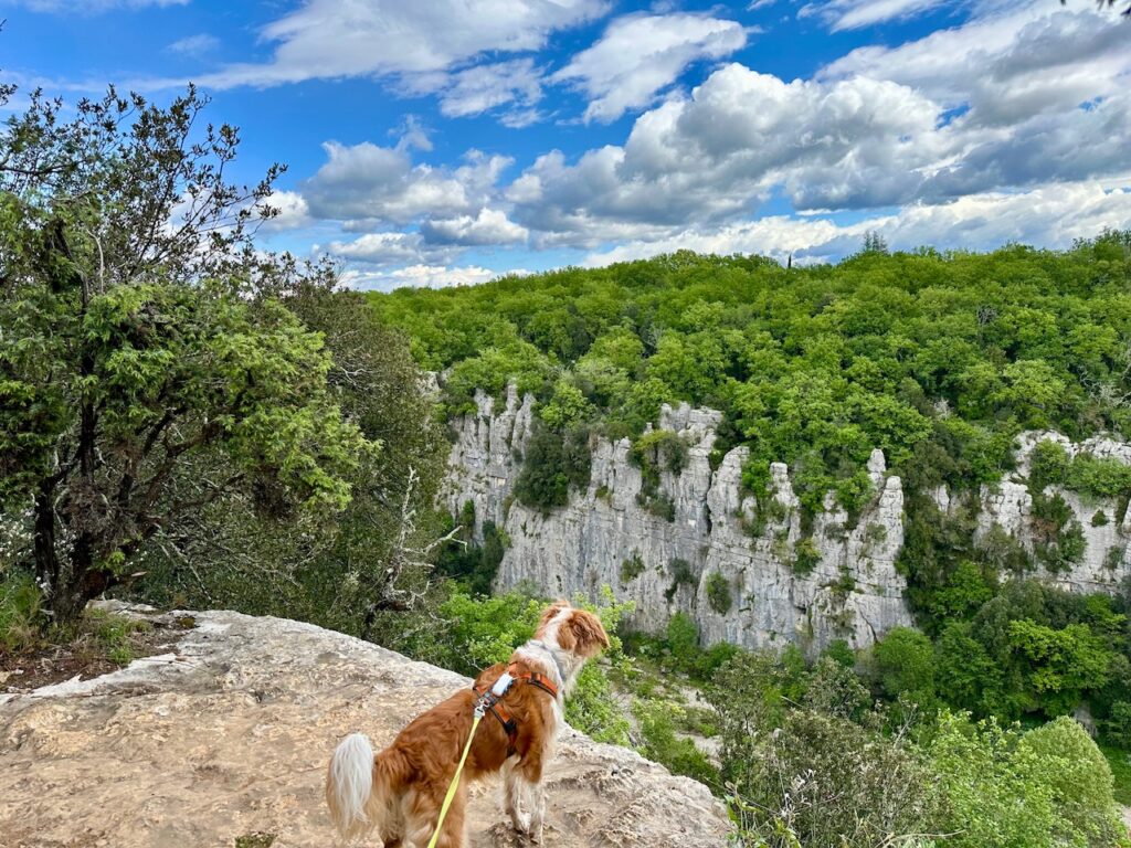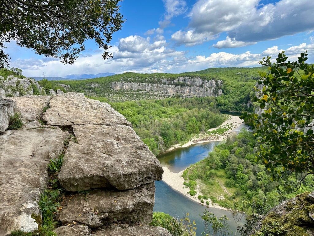 Man kraxelt über die Steilfelsen und hat einen atemberaubenden Blick auf das Flusstal des Chassezac.
