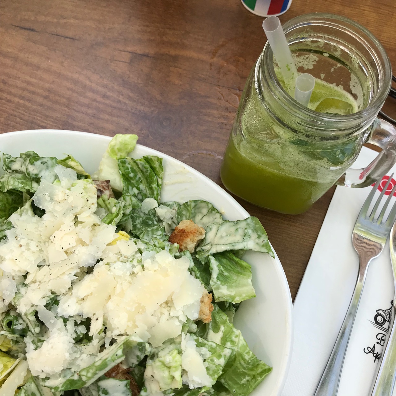 Dienstag und Mittwoch hatte ich gute Mittagspausen mit guten Menschen. Dienstag war ich mit einer lieben Kollegin beim Inder und am Mittwoch habe ich mit einem Kollegen leckeren Salat gegessen. Schön in der Sonne zwischen Oliven- und Zitronenbäumen.