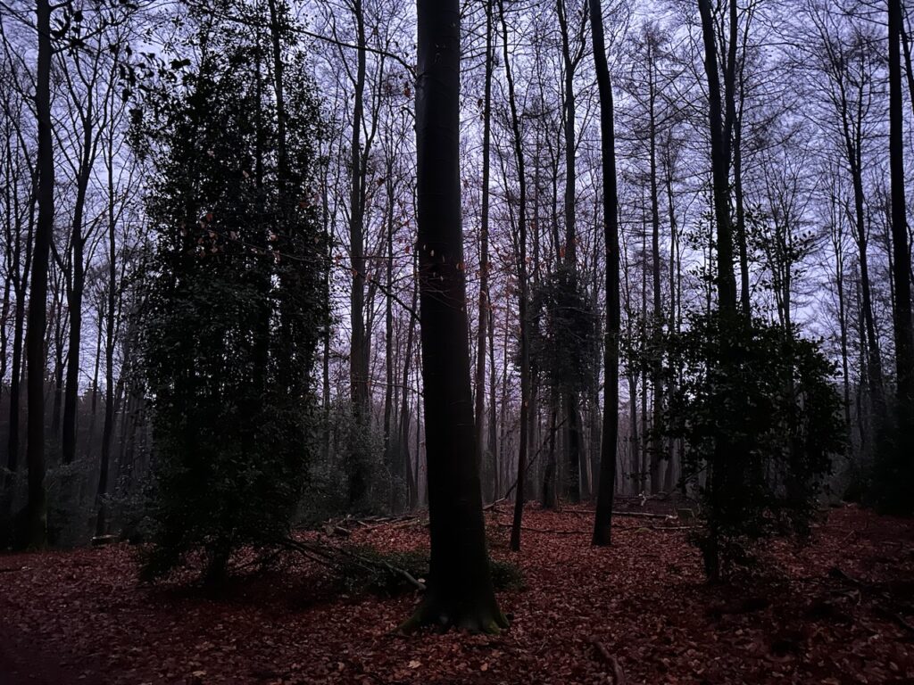 Am Sonntagmorgen war ich schon vor dem Sonnenaufgang mit Lise draussen im Wald. Es war noch recht dunkel, aber das machte diese Hunderunde ziemlich besonders. Irgendwie war es ganz spannend, weil ich in der Dunkelheit die anderen Sinne neben dem Sehen viel offener hatte. Der Blick in den Wald war ein bißchen geheimnisvoll, aber auch so einladend. Ich fühlte mich da so wunderbar geborgen.
