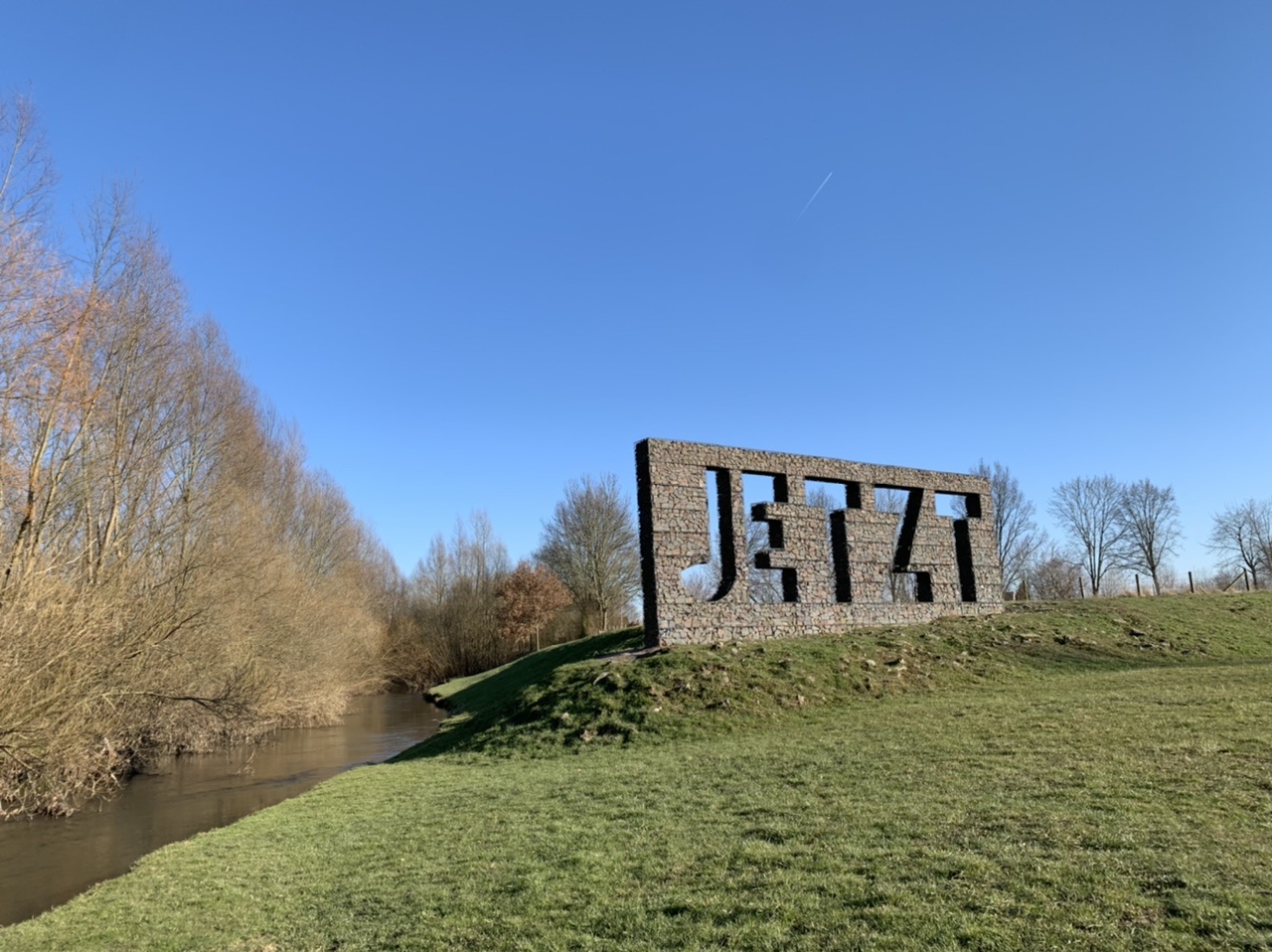 Und ich habe einen neuen Ort kennengelernt: Ich wollte schon immer mal zum JETZT, das da steht. Daran sind wir auch vorbei gekommen. Die Hunde sind durch`s Wasser gelaufen und ich hab mich über das JETZT gefreut, das vielleicht heute noch besser passt als jemals zuvor.