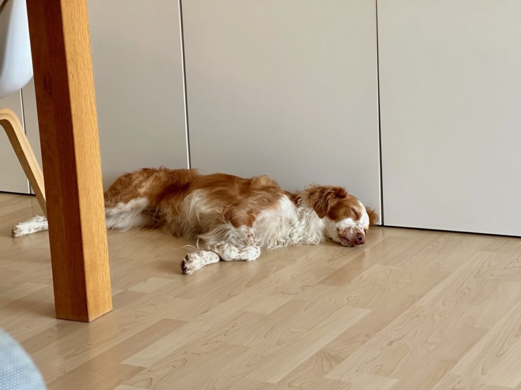 Wir waren vier Stunden unterwegs und Lise war abends platt. Ich liebe es dann, sie beim Schlafen und Träumen zu beobachten. Ihre kleinen Beinchen bewegen sich dann, wenn sie vom Rennen träumt oder sie wufft auch schon mal leise. Hach!