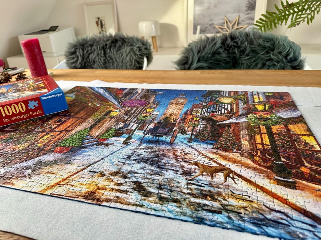 Mich erdet das puzzeln grad so und insofern hab ich mir tatsächlich noch mal neue bestellt. Ich hab erst ein bißchen mit mir gehadert, weil die insgesamt vier neuen Puzzle mir natürlich den Schrank wieder sehr füllen. Und andersrum hab ich um diese Jahreszeit immer so viel Freude daran, dass ich das dann okay fand.