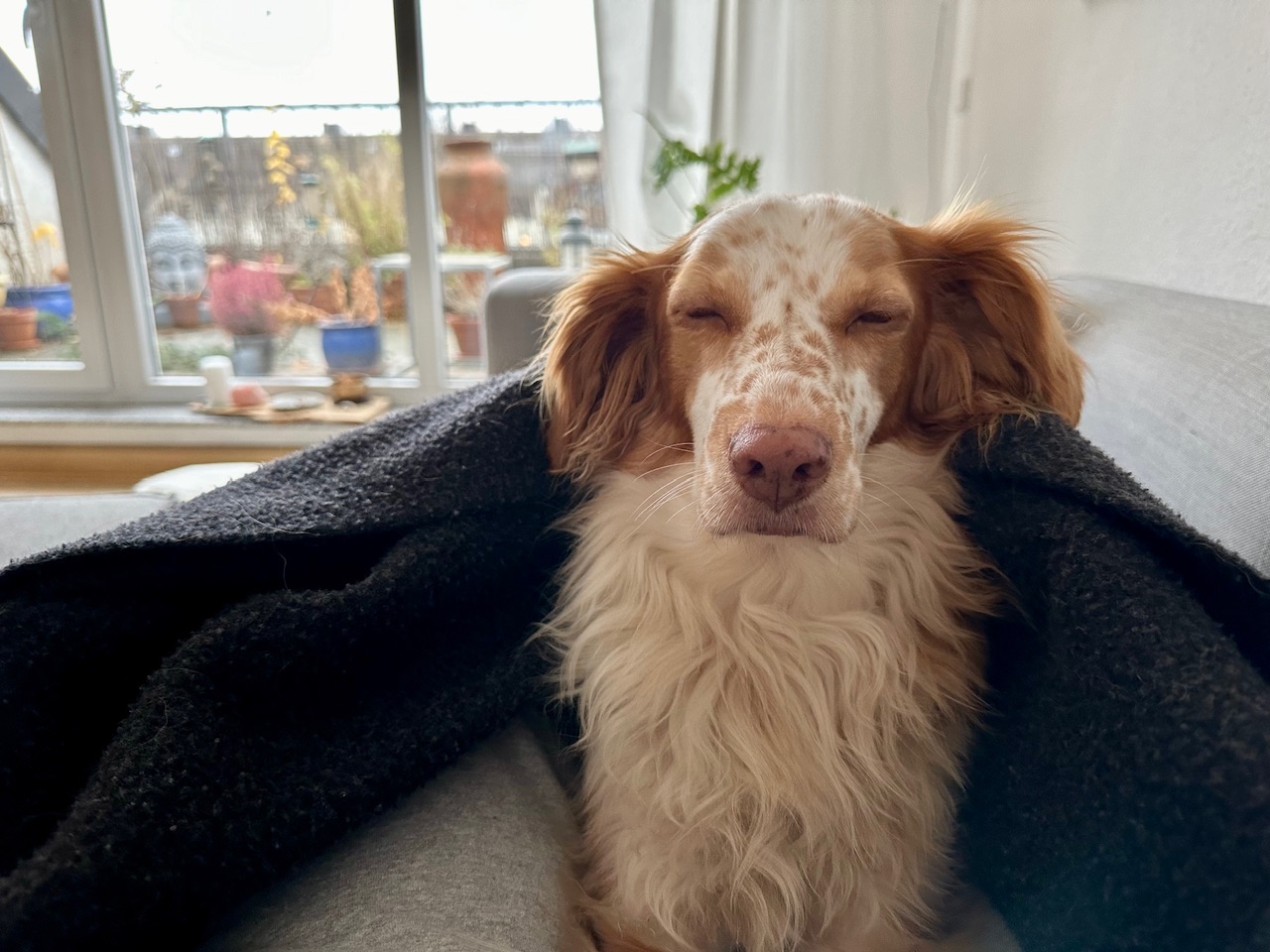 • Letzten Samstagmorgen schon um kurz nach 5 Uhr wachwerden, weil Lise sich im Bett an mich gekuschelt hat, träumt und laut wuffend neben mir liegt. <3