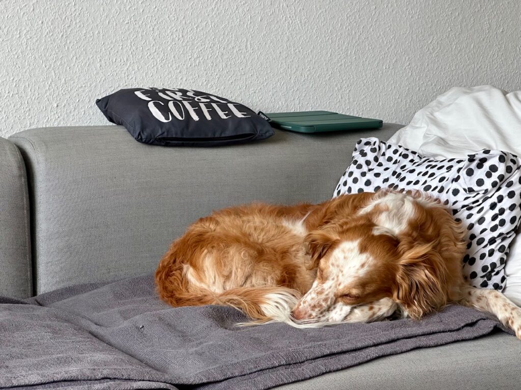 - Und über die Lise freu ich mich immer wieder. Wenn ich auf der Yogamatte zugange bin, rollt sie sich immer auf der Couch ein und chillt. So süß!