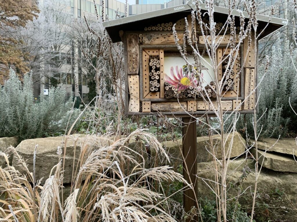 Und auf der Wiese bei uns um die Ecke lagen die Insektenhäuser tief im Winterschlaf.