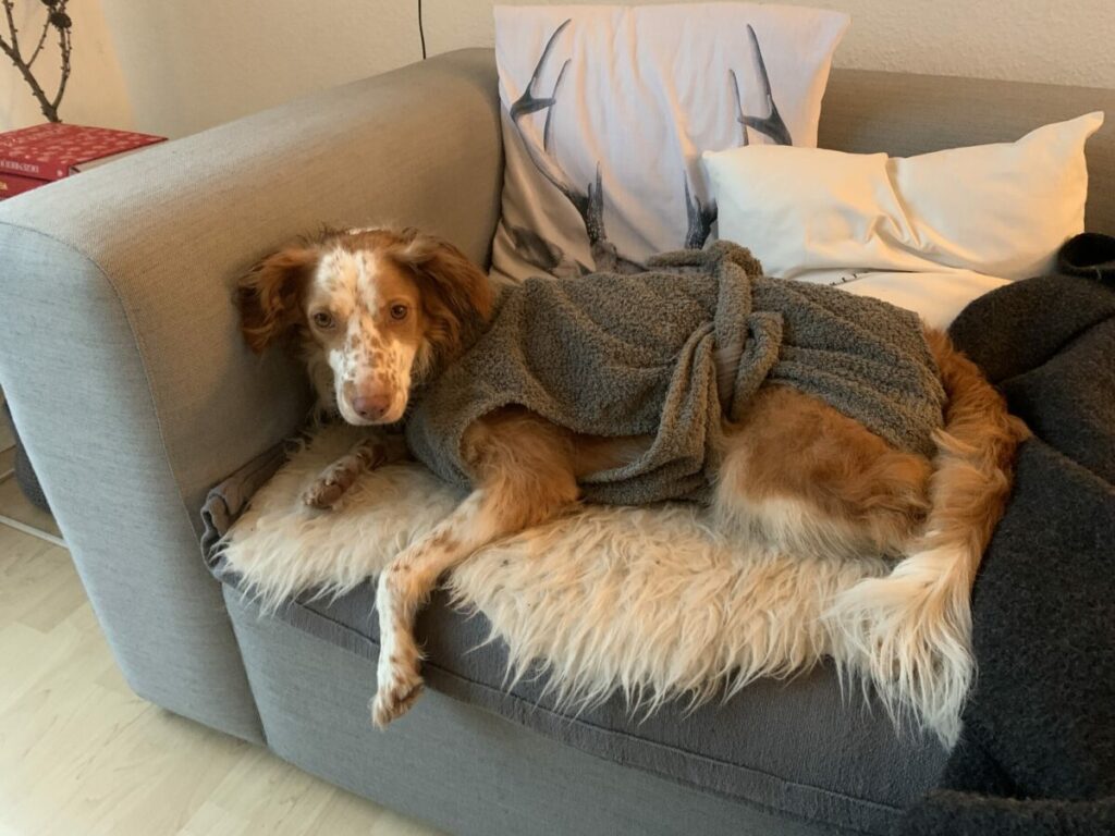 • Eine lange Hunderunde mit Tina. Erst war es noch trocken, später sind wir durch den strömenden Regen gelaufen. Schön war`s trotzdem! Und Lise hat es sich nach der erforderlichen Dusche später auf der Couch gemütlich gemacht.