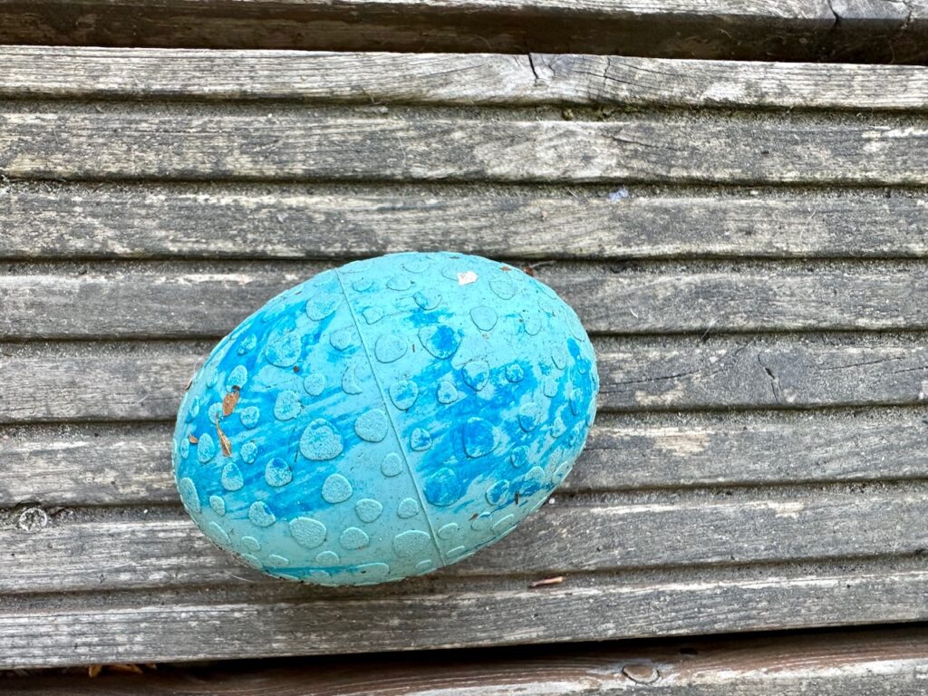Dieser Ball ist schon so oft weggewesen: Im Winter ist er in den tiefen Schnee geraten und es war echt schwer, ihn wiederzufinden. Ein anderes mal hatte er sich hoch oben in einem Baum exakt mit dem Loch auf einen angebrochenen Ast festgesetzt. Und trotzdem hab ich ihn irgendwie immer gerettet.