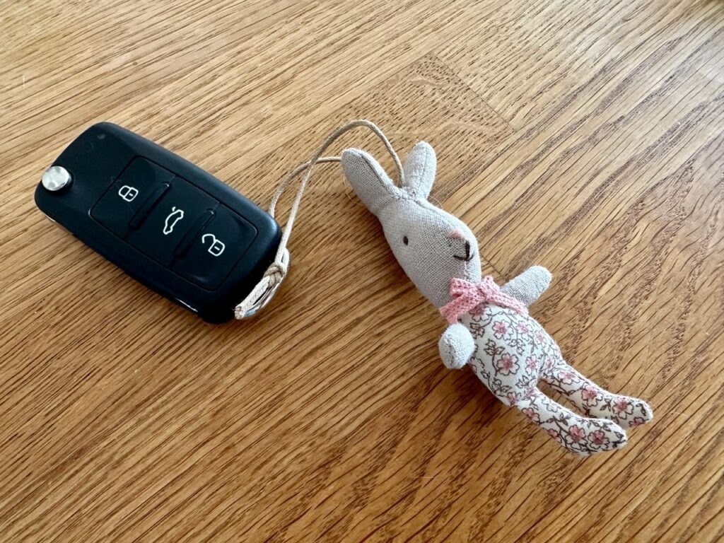 Diese Woche ist ein Schlüsselanhänger für den Bulli-Schlüssel bei mir eingezogen. Ich hatte von Anfang an vor, mir einen zu besorgen, wollte aber warten, bis mir ein hübscher vor die Füsse fällt. Und nun, beim Café Lebensart hab ich einen kleinen, süßen Hasen entdeckt. Den wollte mein Inneres Kind gerne zum Geburtstag haben. Also hab ich ihn mitgenommen. Und jetzt freu ich mich. 🙂