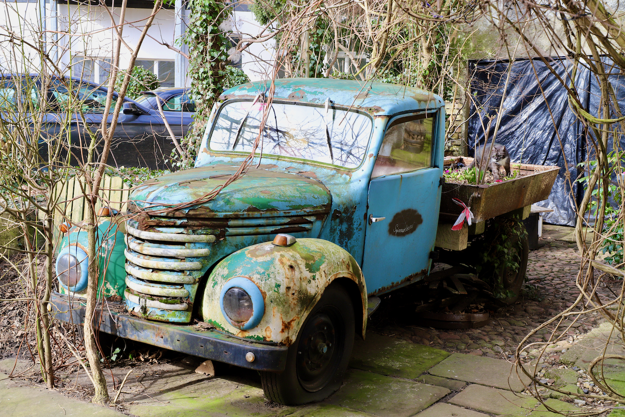 Ich habe mich zum Beispiel diese Woche total gefreut, als ich in Steinfurt diesen schönen Oldtimer entdeckt habe. Und als ich dann noch die Katze auf der Ladefläche gesehen habe, war der Moment perfekt.