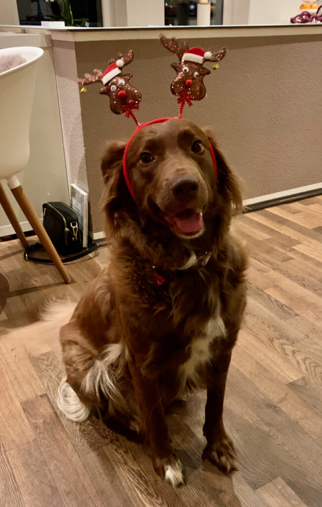Später haben wir dann Raclette gegessen. Und der Hund war auch schön geschmückt.