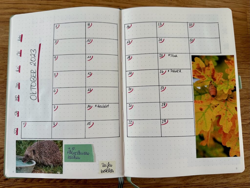 Wie auch immer, ich hab jedenfalls schon mal mein Journal vorbereitet, das mich von September bis Dezember begleiten wird. Darin finden sich nun für die Monate September bis Dezember nun je eine Doppelseite pro Monat für Termine u. ä.