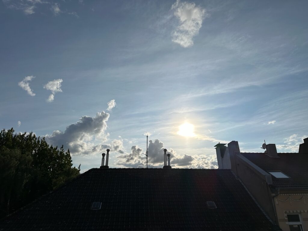 - Nach einem trüben, regnerischen Tag abends noch die Sonne am Himmel zu entdecken.