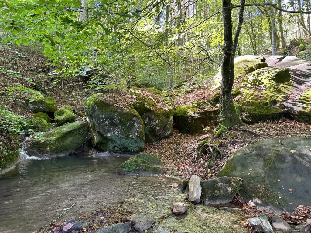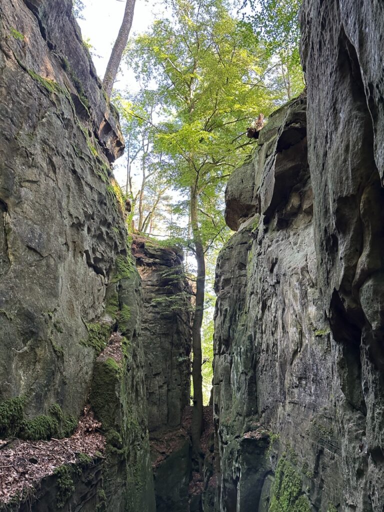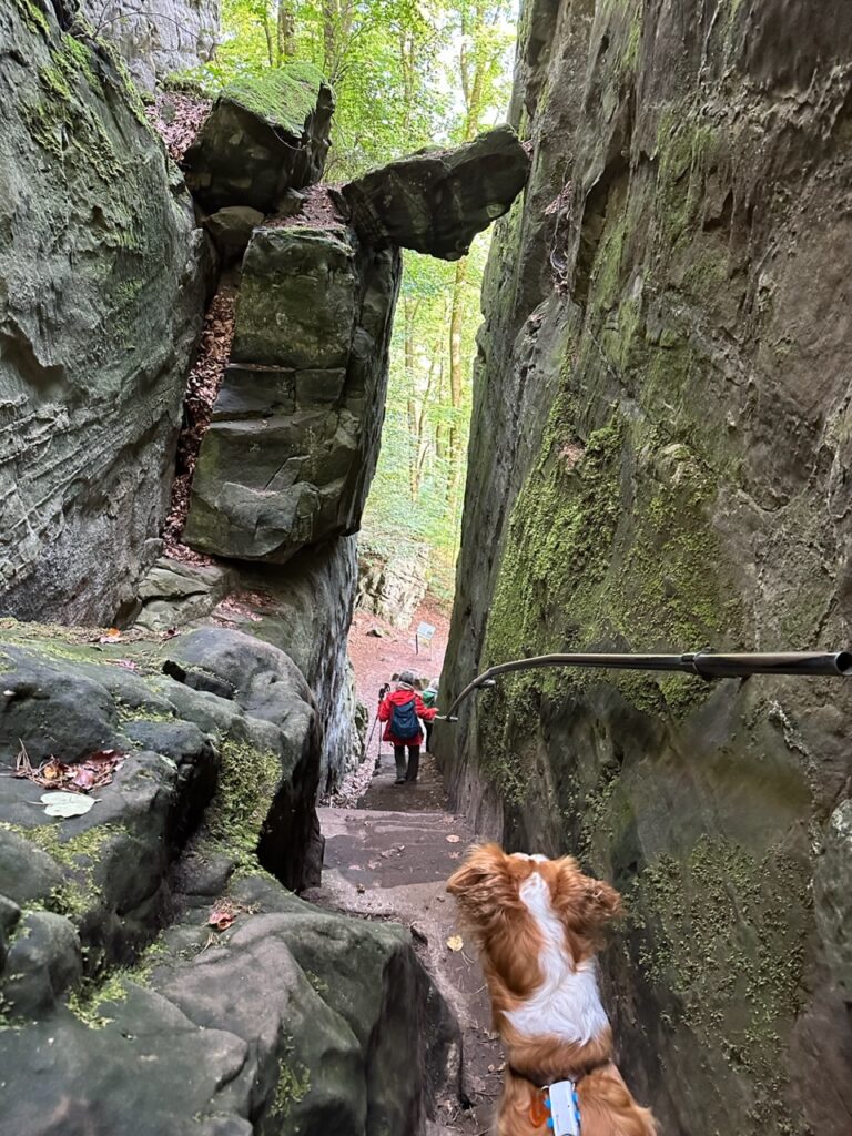 Am nächsten Tag haben wir die Teufelsschlucht in der Nähe von Bitburg besucht. Die hat mich total fasziniert! Hier finden sich enge Schluchten, viele große Felsblöcke, vermooste Steine und tolle Natur.