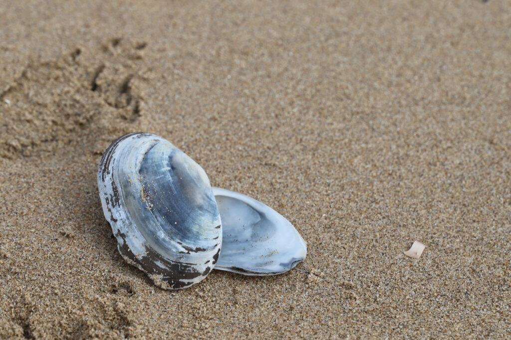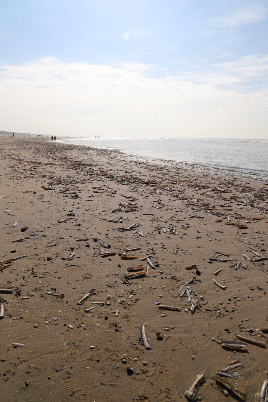 Offenbar war hier ordentlich was los. Am Strand liegen Massen von Muscheln.
